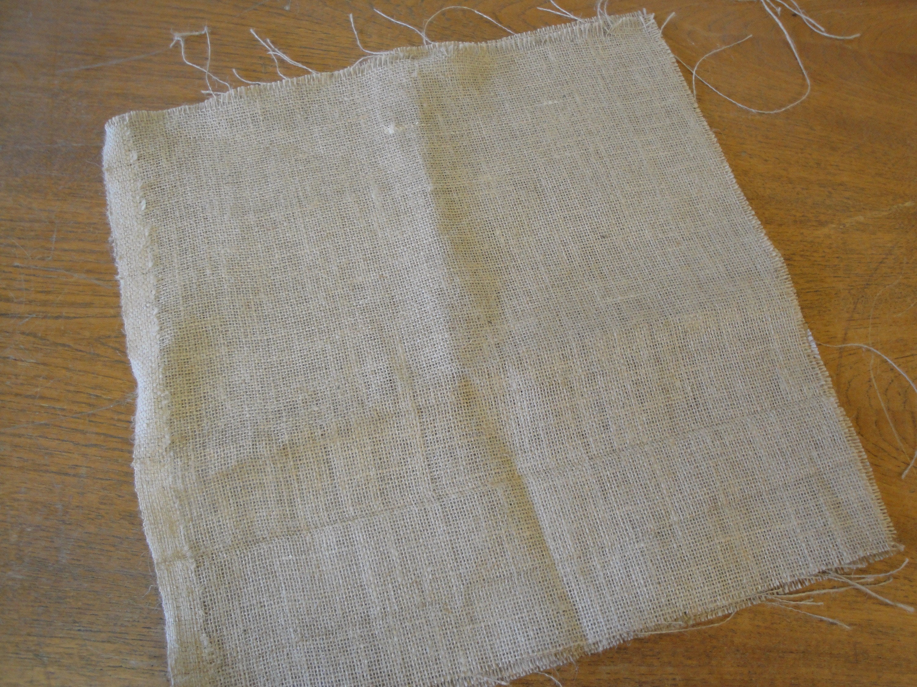 • Place the hessian square into your empty basket, centred so it overlaps evenly on all sides